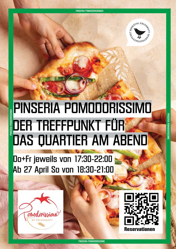 Komme vorbei und geniesse bei uns eine leckere, frisch zubereitete Pinsa von der Quartierspinseria Pomodorissimo! Dazu gibt es Getränke an unserer Bar.