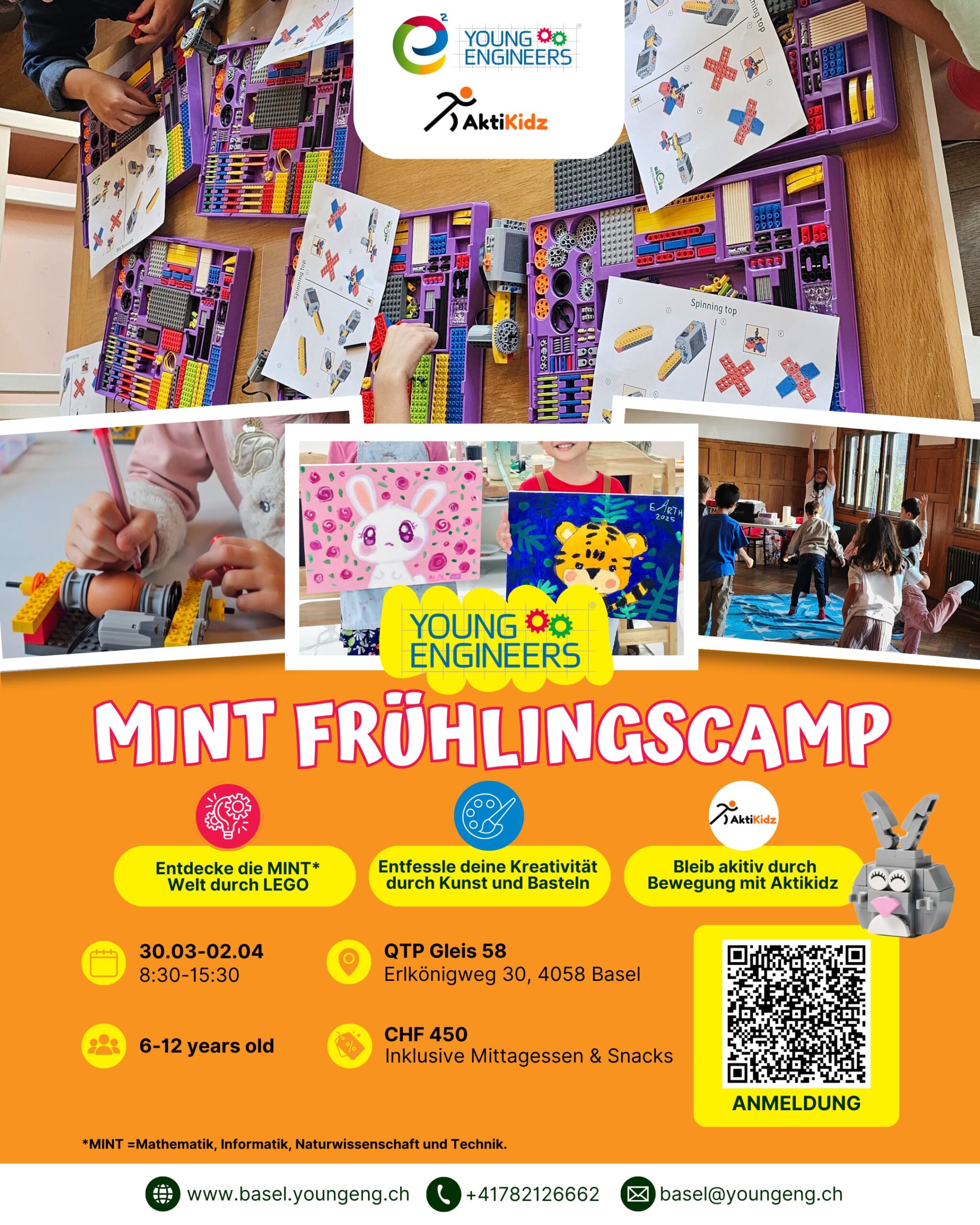 Das Frühlingstageslager (MINT-Frühlingscamp), geleitet von Young Engineers und AktiKidz, findet ein weiteres Mal im Quartiertreffpunkt Rosental Erlenmatt statt. Wir freuen uns, euch wieder da zu haben und laden alle Kinder zwischen 6 und 12 Jahren herzlich zur Teilnahme ein!
