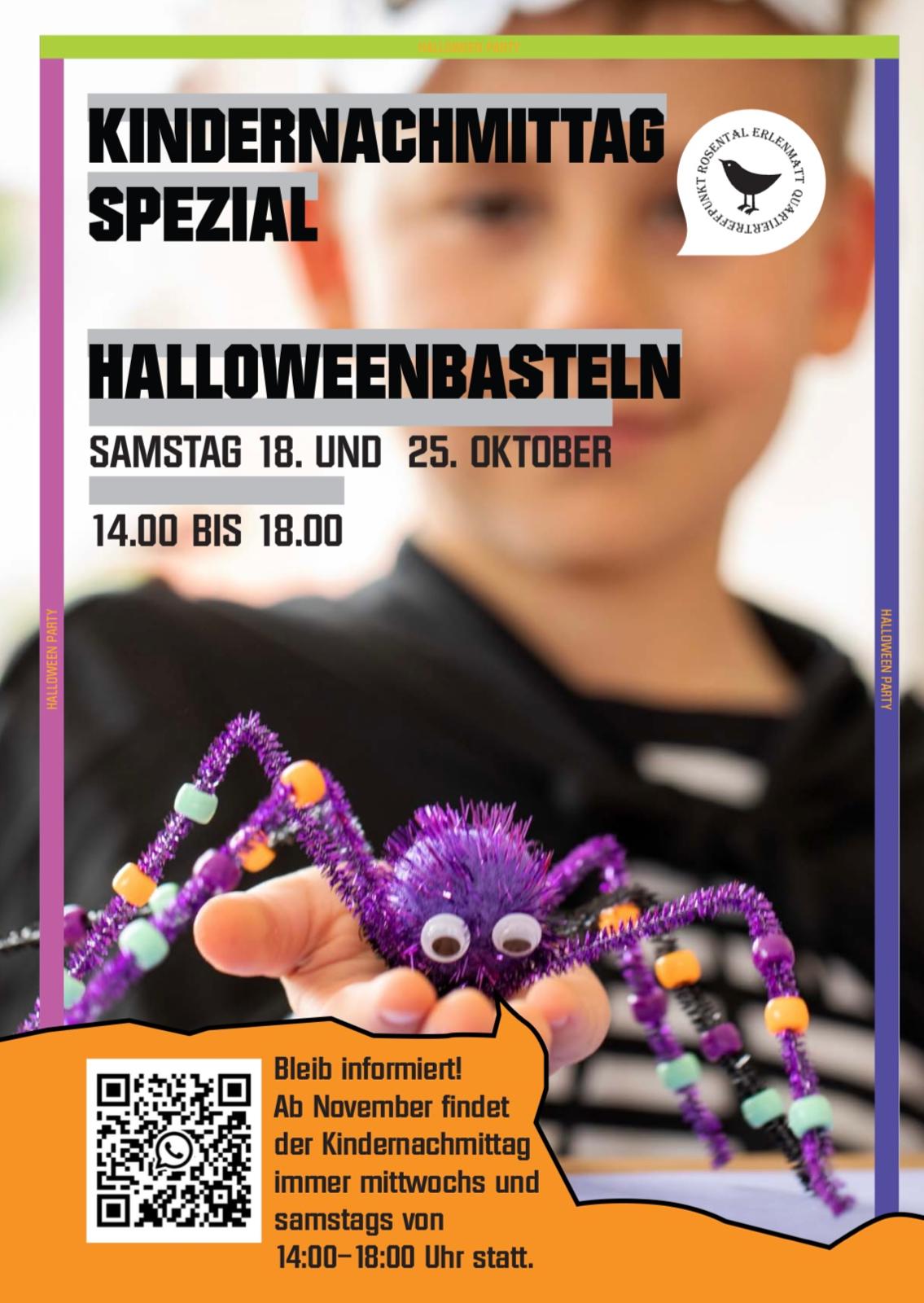 In Kürze: Halloweenbasteln im QTP Rosental/Erlenmatt. Samstag 18./25. Oktober 2025. Jeweils 14:00-18:00 Uhr. Kostenlos, Anmeldung nicht notwendig (aber willkommen).